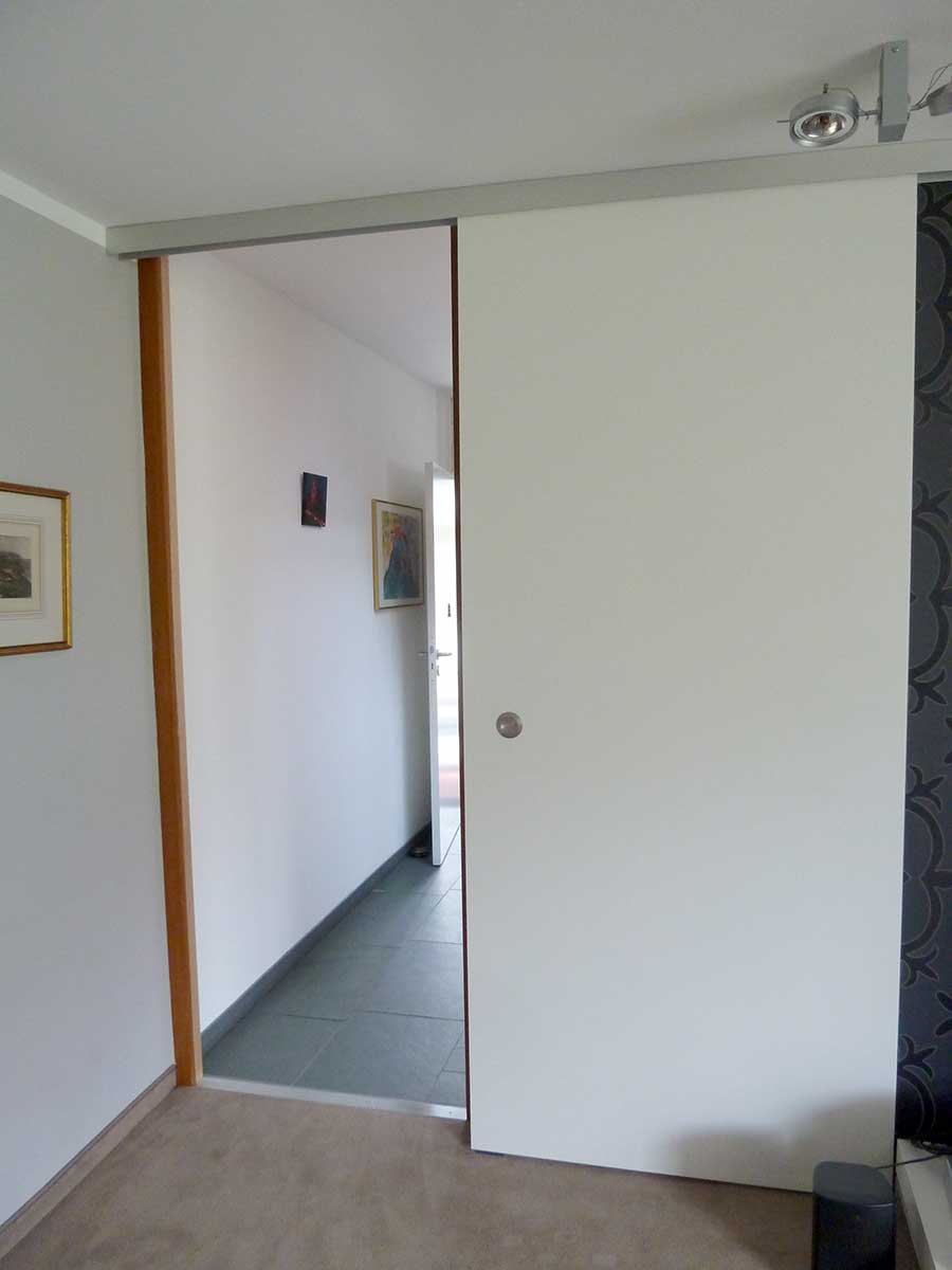 Raumhohe Schieberüre in Weisslackoptik Schiebetürbeschlag mit Einzugsdämpfung Skip back to main navigation